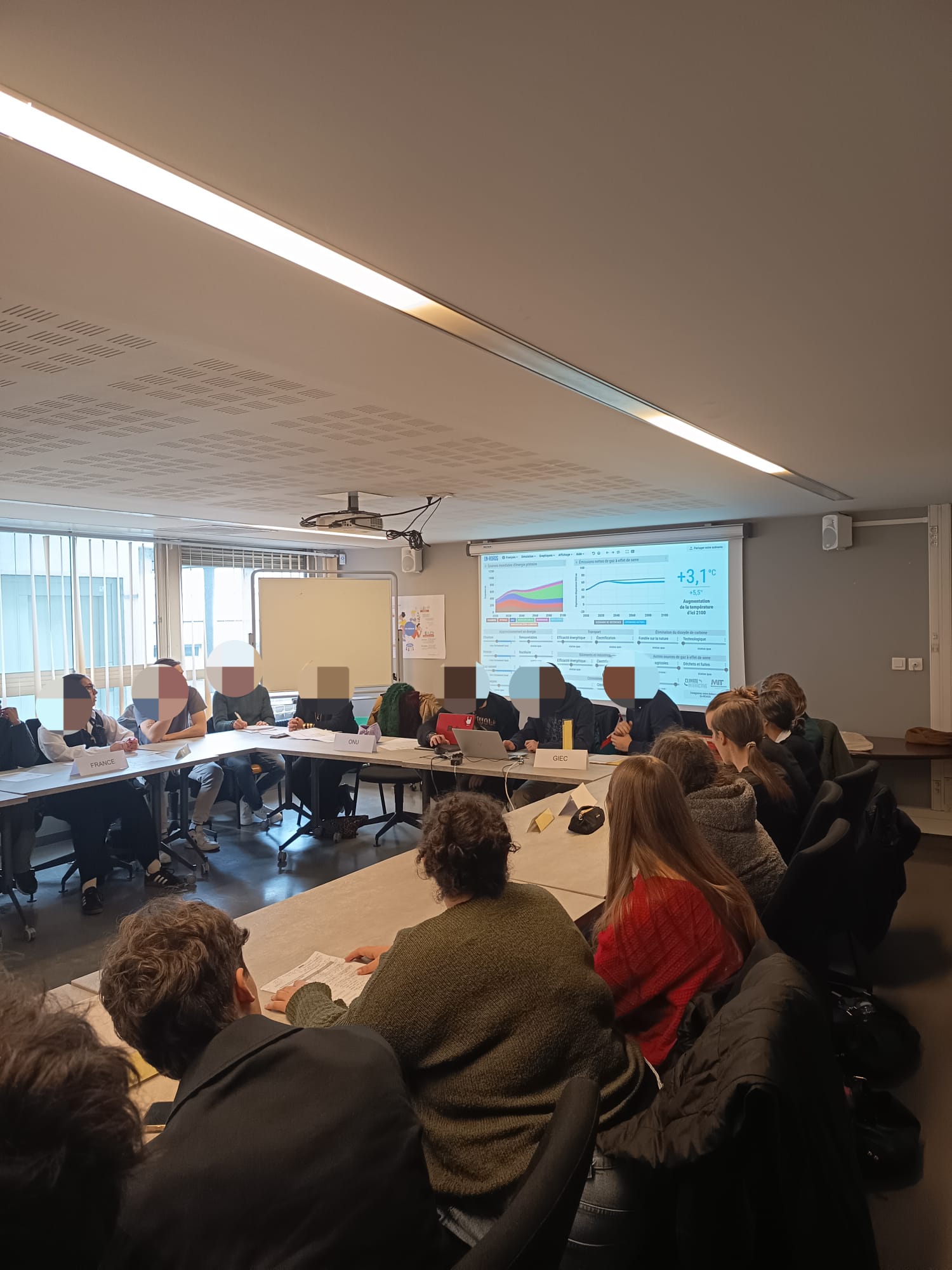 EncadrĂ©s par Mesdames Pasutto et Martin, les Ă©lĂšves ont dâabord menĂ© un travail de recherche en classe pour construire leurs positions, avant de passer Ă lâĂ©preuve reine : prendre la parole en public et nĂ©gocier sans (trop) perdre son calme. Au casting : des Ătats aux intĂ©rĂȘts divergents et avec quelques fois une mauvaise foi Ă toute Ă©preuve, le GIEC venu rappeler que "le changement climatique nâest pas une opinion, câest prouvĂ© scientifiquementâ, TotalEnergies en mode lobbying qui "soutient la transition" mais rappelle quâ "on a encore du temps", et Greenpeace pour maintenir la pression souhaitant que le changement se fasse âvite, fort, et maintenantâ.