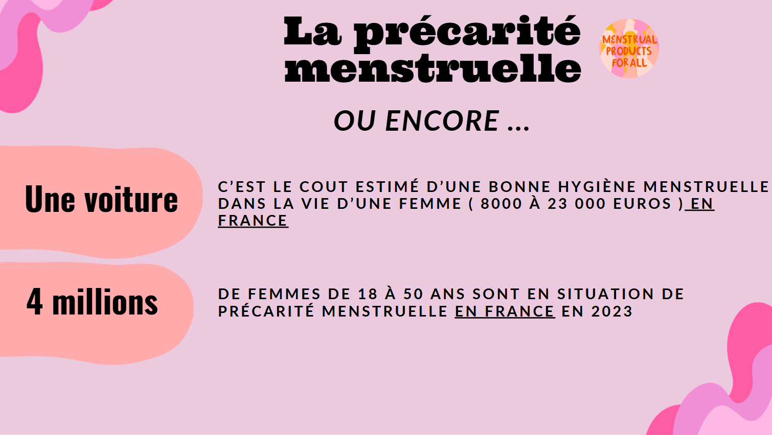 1 femme sur 4 y est confrontée! 4 millions de femmes menstruées en France y sont confrontées chaque mois!