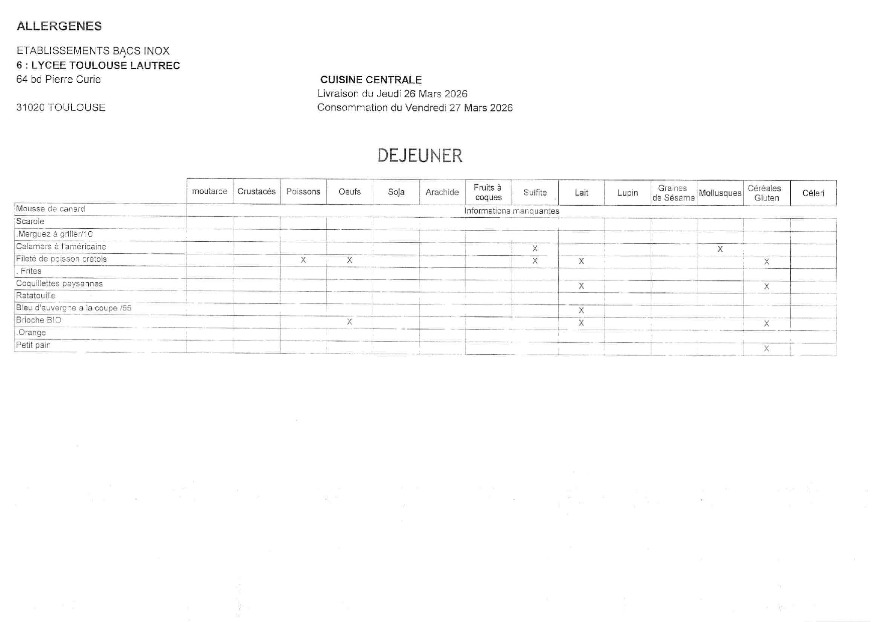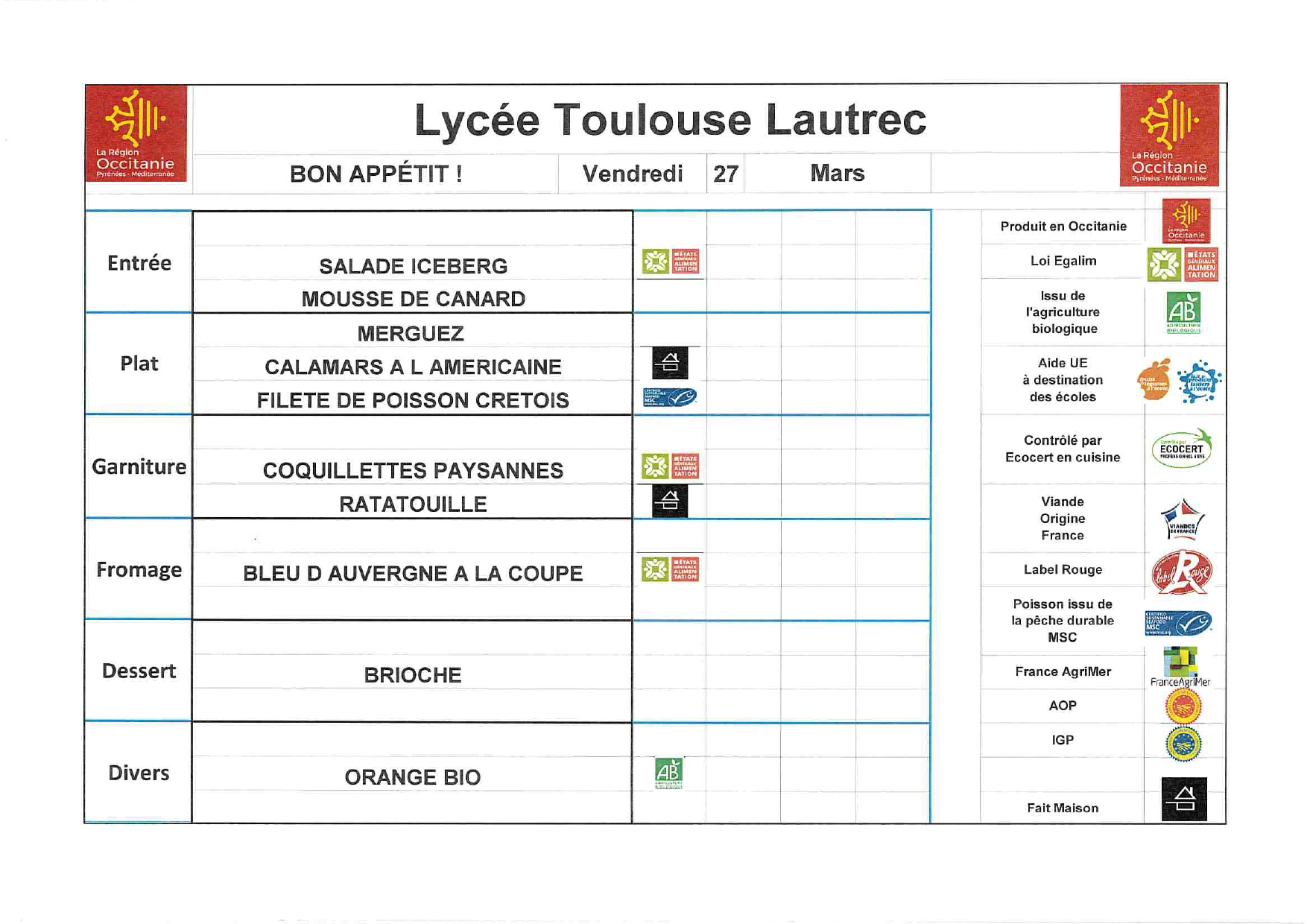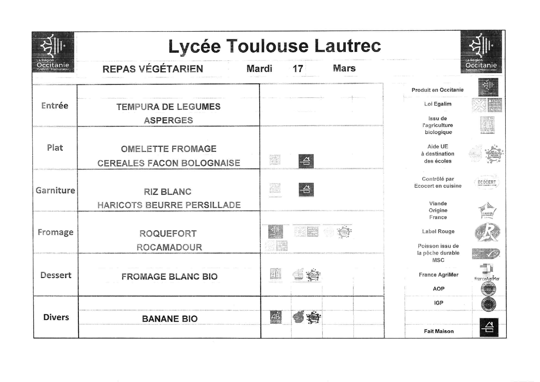 Le site de la cuisine centrale des lycées informe sur les menus de la semaine.