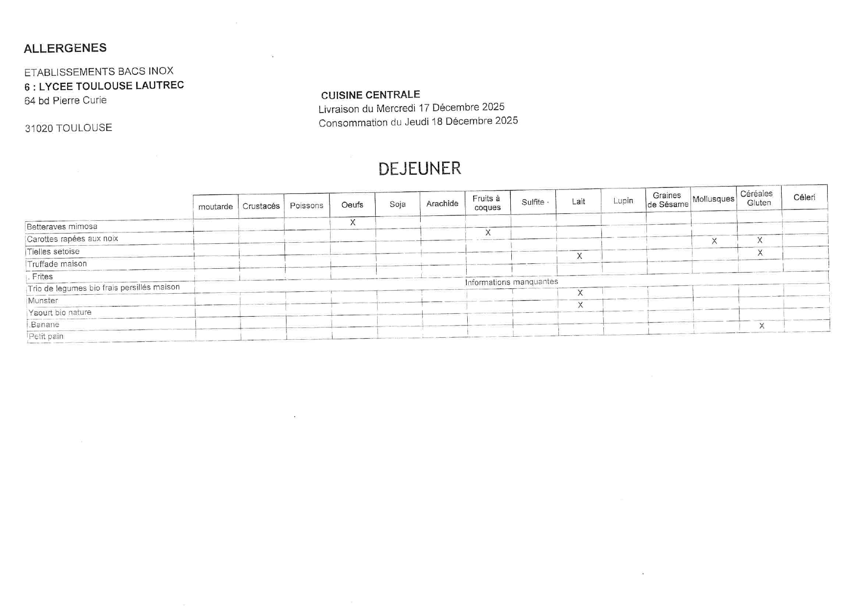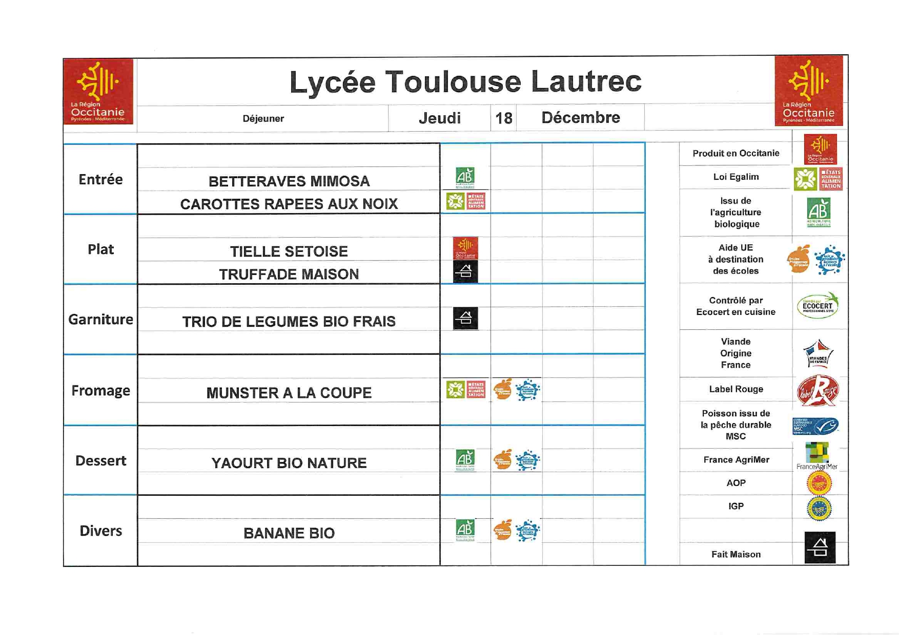 Le site de la cuisine centrale des lycées informe sur les menus de la semaine.