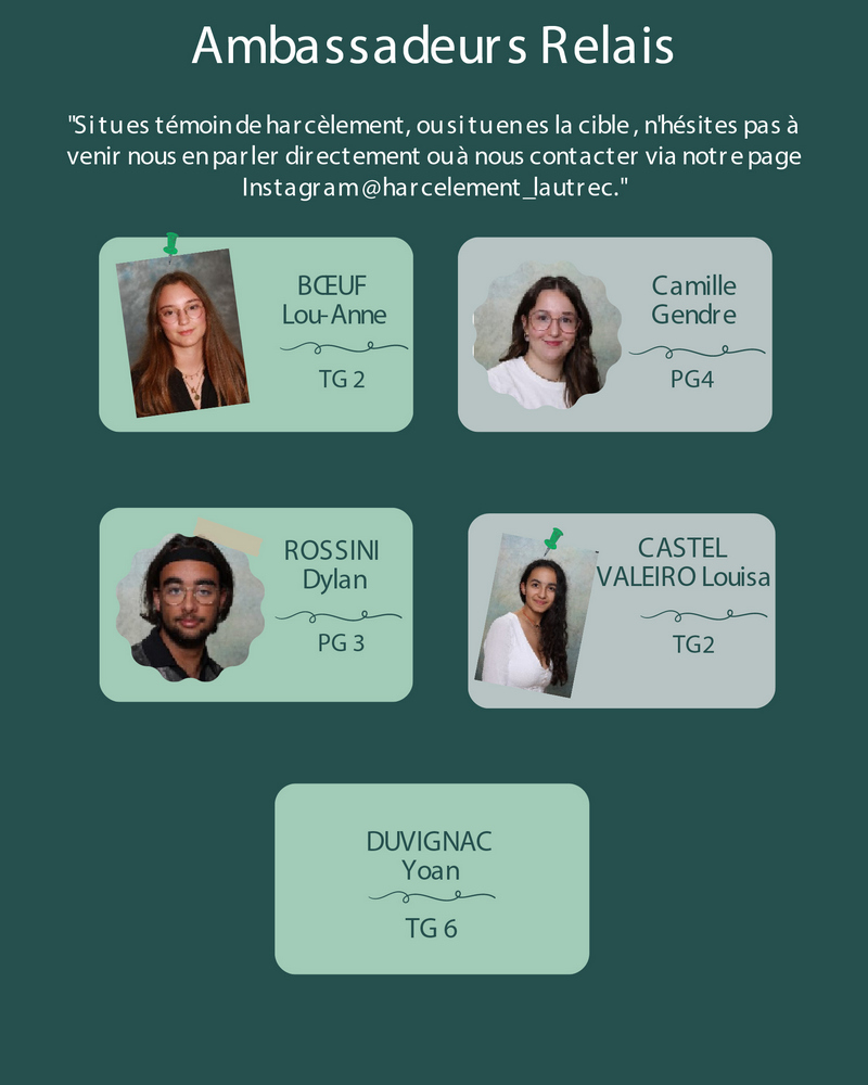 Semaine de sensibilisation auprès des élèves Du 10 au 14 novembre 2025, les élèves ambassadeurs ont animé des quizz, des jeux et des discussions autour du harcèlement sur le temps méridien à destination de tous les élèves du lycée